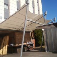 ◼︎施工前 ◼︎施工後 ◼︎ご要望 劣化して破れてしまったテントの張替えでした。 ◼︎施工コメント ワイヤーにSUS金具で固定するため、寸法がシビアでした。また不燃シートのため、扱い・施工が難しかったです。